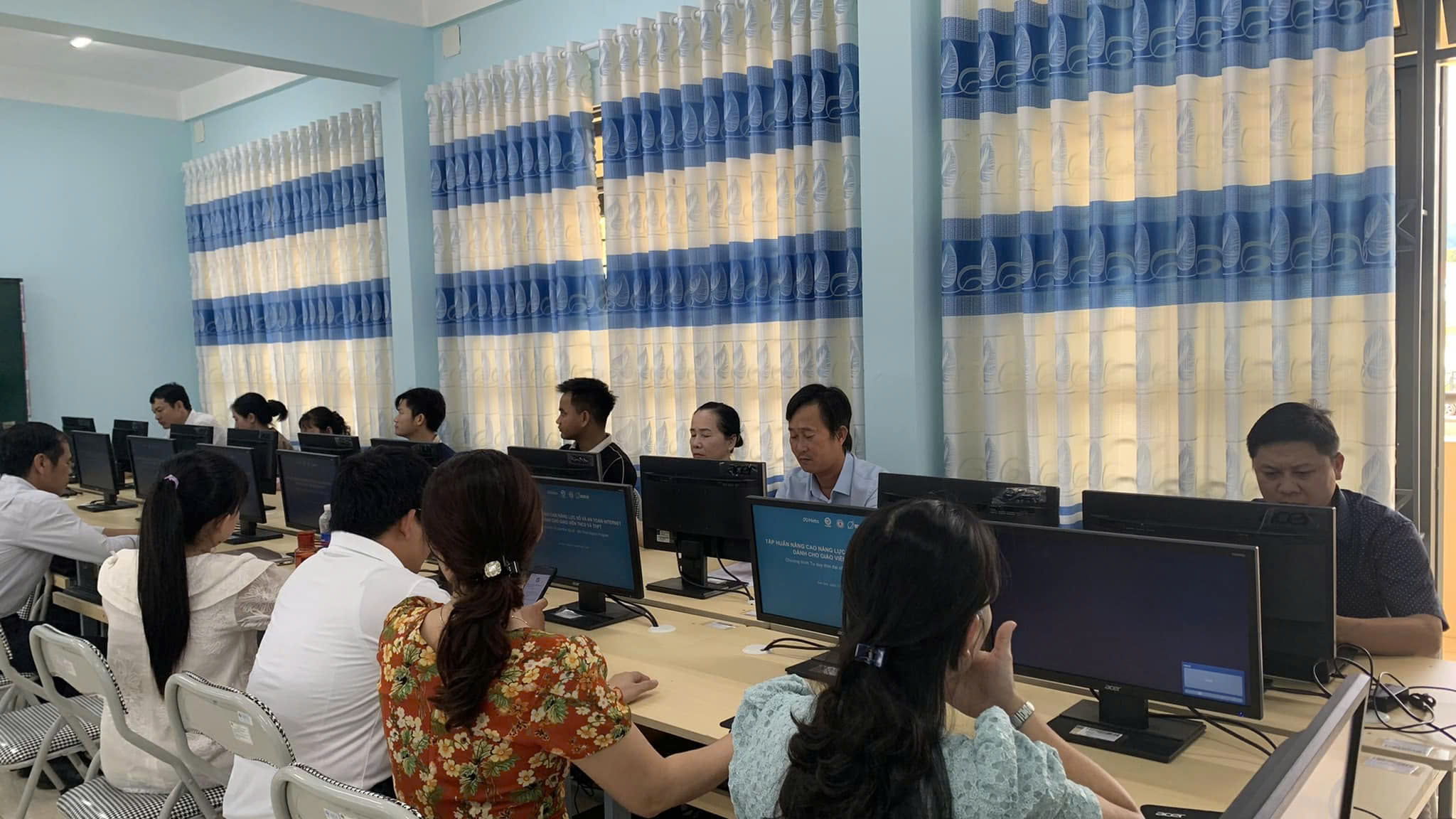 Hình ảnh toàn thể giáo viên trong nhà trường tham gia tập huấn
